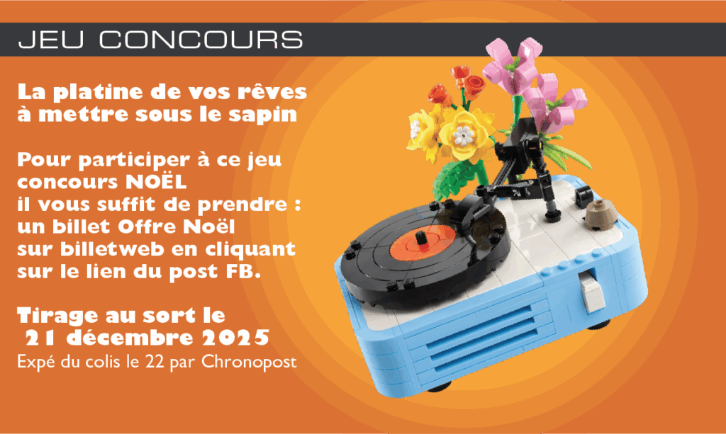 Tout achat d’une entrée ‘OFFRE NOËL: billet + Sac Offert’ avant le 22 décembre = participation au jeu concours pour la platine Lego. Expédition le 22/12/2025 par Chronopost pour la mettre sous le sapin le 24 décembre🎅🦌.